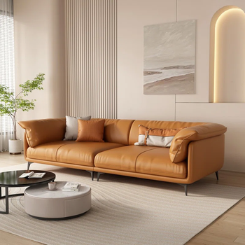 Sofá Chesterfield Escandinavo de 3 plazas, sofá tapizado de cuero genuino de diseño minimalista para Hotel, Villa, apartamento, sala de estar